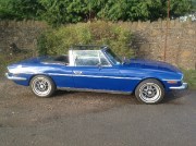 Triumph Stag 1976 in excellent condition, blue and black trim, with hard top.